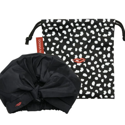 Created in the iconic 1950s style, fight frizz and protect hair from unwanted splashes in the shower or by the pool with this stylish shower hat. Designed with a beautiful bow and the iconic red lip logo, the shower cap will fit your head perfectly and seamlessly protect hair.
