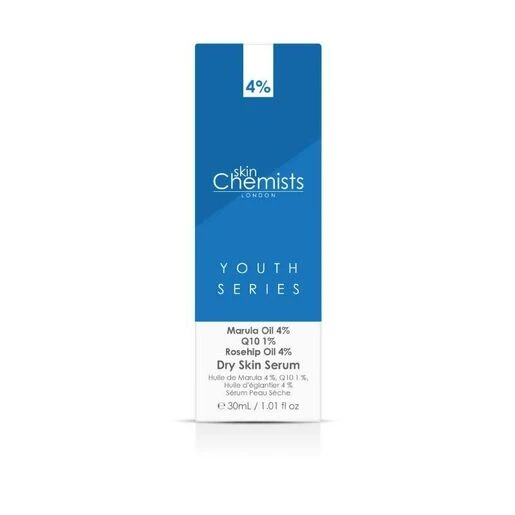 Treat your dry, dehydrated skin with skinChemists Dry Skin Serum, containing Marulua Oil 4%, Q10 1%, and Rosehip Oil 4%.