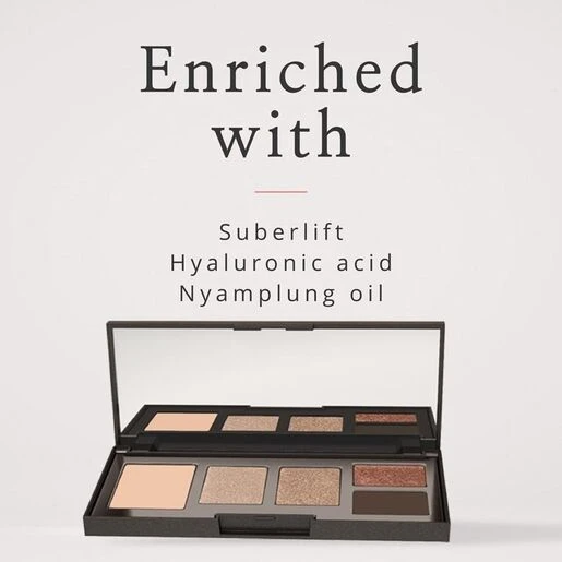A professional standard primer preps skin, before three soft shimmering, super-fine shades and one deeper matte shadow brighten, enhance, contour and define, for a long-lasting and crease-free finish. An eye makeup essential for mature skin, enjoy a youthful flush of nude, instantly illuminating colour from three softly shimmering shades. Then opt for definition and depth with a sweep of our matte wet/dry shade. Effortless, effective and beautifully enhancing – all eyes will, most certainly, be on you! Enriched with a firming and tightening antioxidant-rich botanical active, Suberlift™, protecting Nyamplung Oil™ plus rejuvenating Hyaluronic Acid.